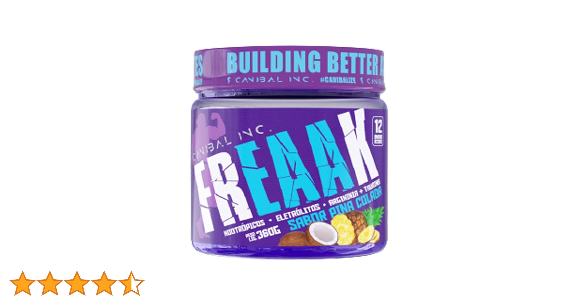 Amino Freak da marca Canibal Inc.,um produto formulado com aminoácidos essenciais (EAA's) e nootrópicos para melhorar o desempenho físico e mental durante o treino, sendo um pré-treino ou intra-treino focado em recuperação, foco e energia. Ele contém 12 aminoácidos, incluindo os de cadeia ramificada (BCAAs), e é uma alternativa a suplementos como oWhey Proteinpara quem busca mais foco e menos calorias, com versões saborizadas como Piña Colada.